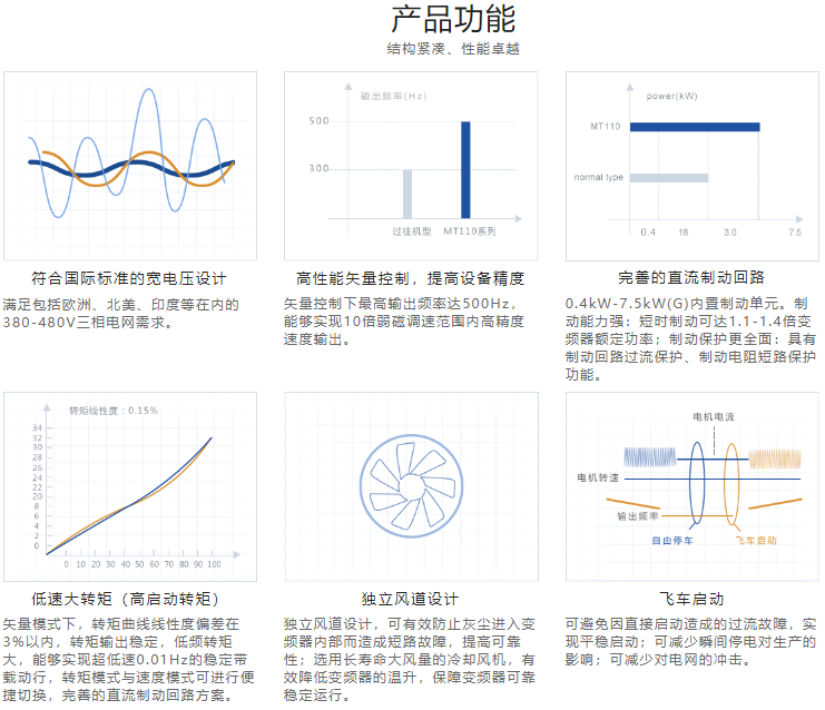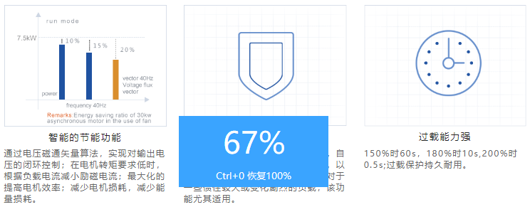 ②體積小,先進(jìn)的熱設(shè)計(jì),比同類型變頻器體積大大縮??; 接線方便,控制回路端子采用彈簧式端子,免螺絲安裝,效率高;