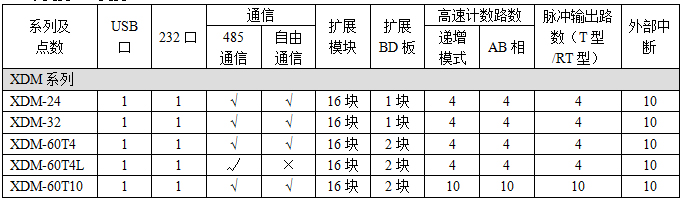 1:XD1系列經(jīng)濟型 2:XD2系列基本型 3:XD3系列標準型 5:XD5系列增強型 M:XDM系列運動控制型 C:XDC運動總線控制型 |